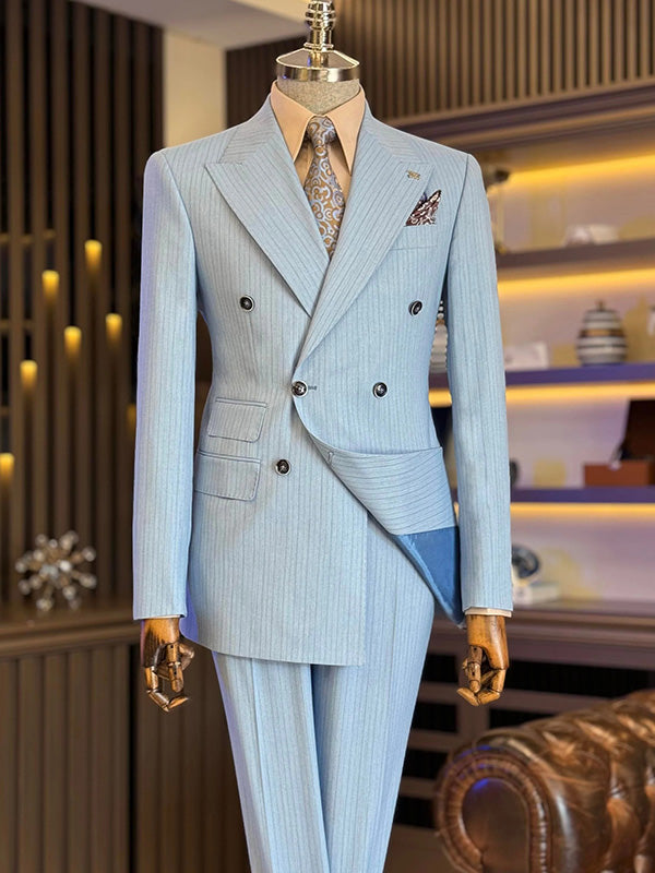 Blue striped 2-piece double-breasted Peak Lapel suit